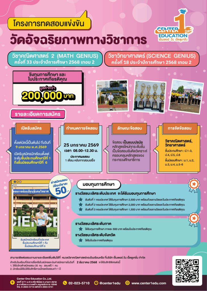 แชทหาเราโดยตรงได้ที่ Line: @center1edu